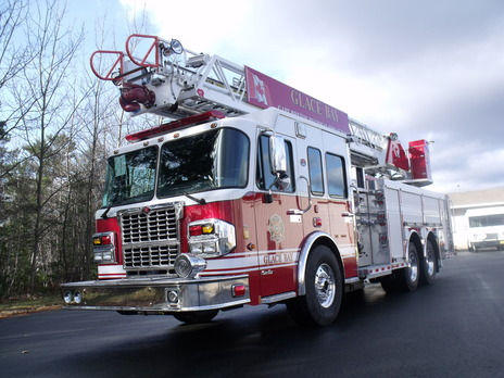 Discharges: (1) 1.5" trash line in the front bumper, (2) 1.5" crosslays, (4) 2.5" discharges, (1) 4" Storz dishcarge, (1) 3" aerial discharge/rear waterway inlet with a rear 4" Storz fitting (this plumbing allows charging of the waterway from the pump or from a relay pumper)